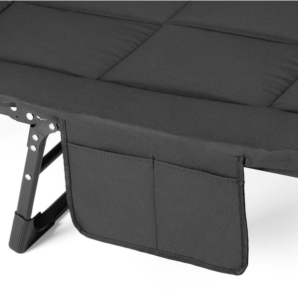 - Mobilność i łatwe przechowywanie: Kompaktowa, składana konstrukcja i niewielka waga ułatwiają transport i przechowywanie, a boczna kieszeń pozwala na wygodne przechowanie drobiazgów.