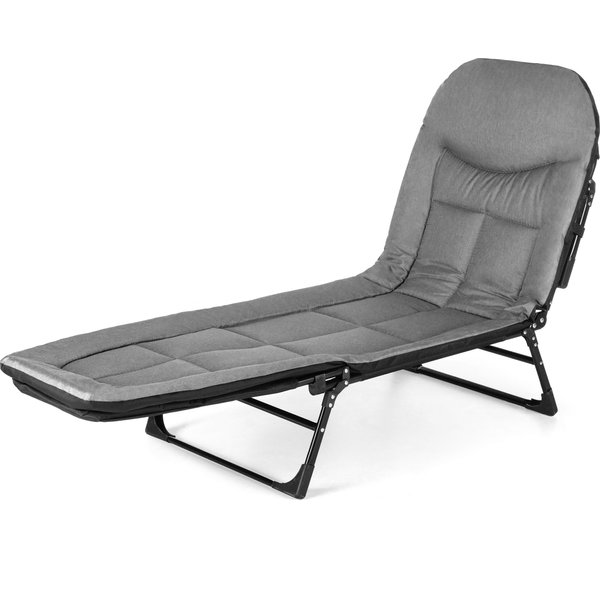 Siedzisko wypełnione miękką pianką zapewnia wygodę podczas dłuższego odpoczynku. Dodatkowo 6-stopniowa regulacja oparcia umożliwia precyzyjne dostosowanie kąta nachylenia – od pozycji leżącej idealnej do opalania, aż po bardziej pionową do komfortowego czytania lub relaksu w cieniu.
