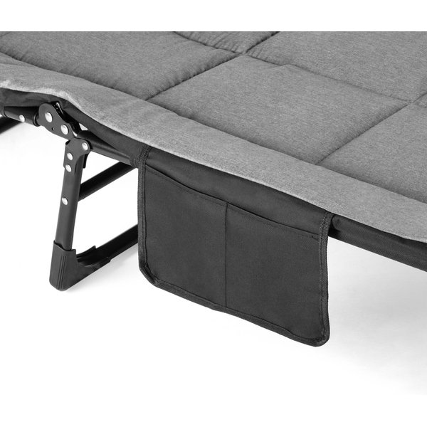 - Mobilność i łatwe przechowywanie: Kompaktowa, składana konstrukcja i niewielka waga ułatwiają transport i przechowywanie, a boczna kieszeń pozwala na wygodne przechowanie drobiazgów.
