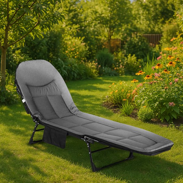 Leżak Outtec oferuje komfortowy wypoczynek dzięki miękkiemu siedzisku i 6-stopniowemu oparciu, które umożliwiają idealne dopasowanie pozycji do opalania lub relaksu w cieniu. Solidny stelaż ze stali malowanej proszkowo oraz wytrzymały materiał gwarantują stabilność użytkowania i udźwig do 120 kg w różnych warunkach plenerowych. Składana, lekka konstrukcja ułatwia przenoszenie i przechowywanie, a praktyczna boczna kieszeń pozwala mieć najpotrzebniejsze rzeczy zawsze pod ręką.