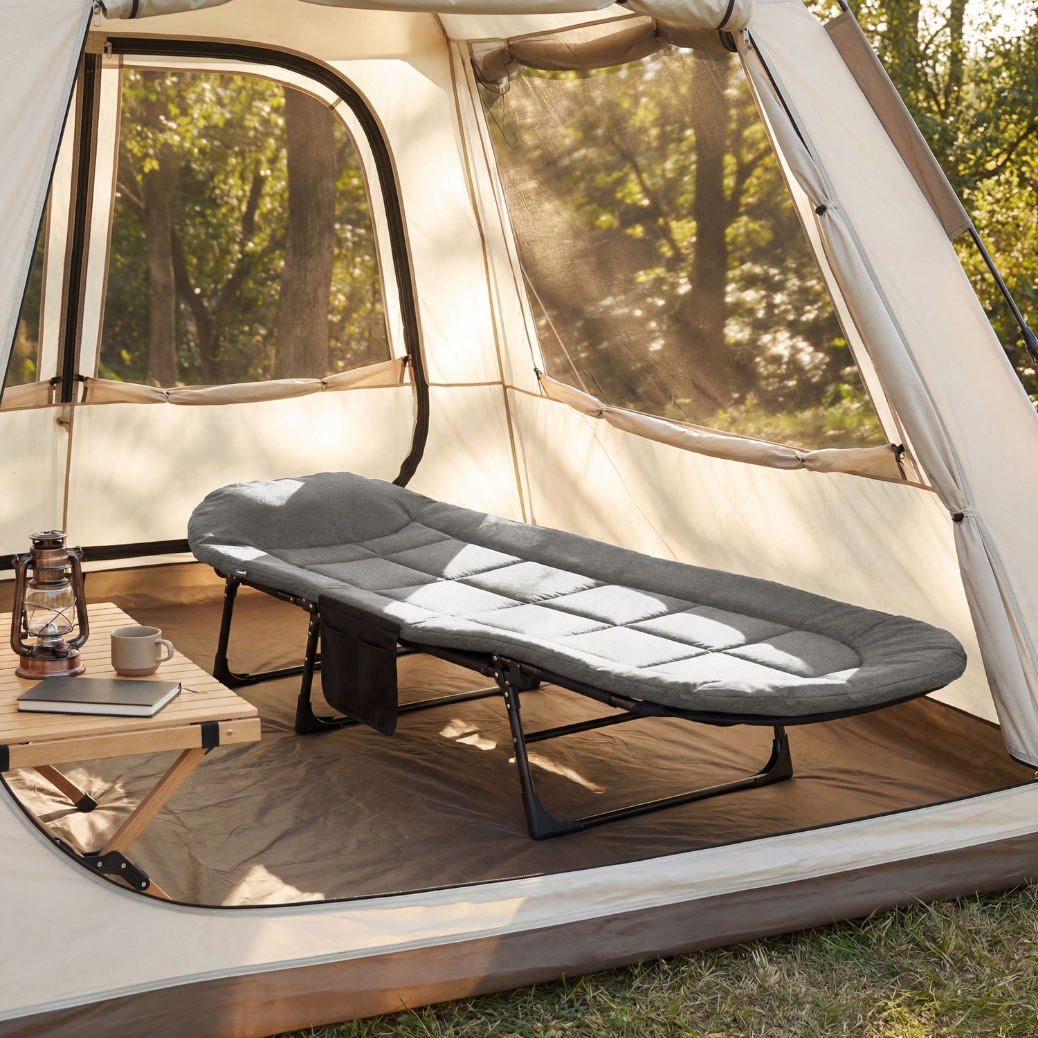- Mobilność i łatwe przechowywanie: Kompaktowa, składana konstrukcja i niewielka waga ułatwiają transport i przechowywanie, a boczna kieszeń pozwala na wygodne przechowanie drobiazgów.