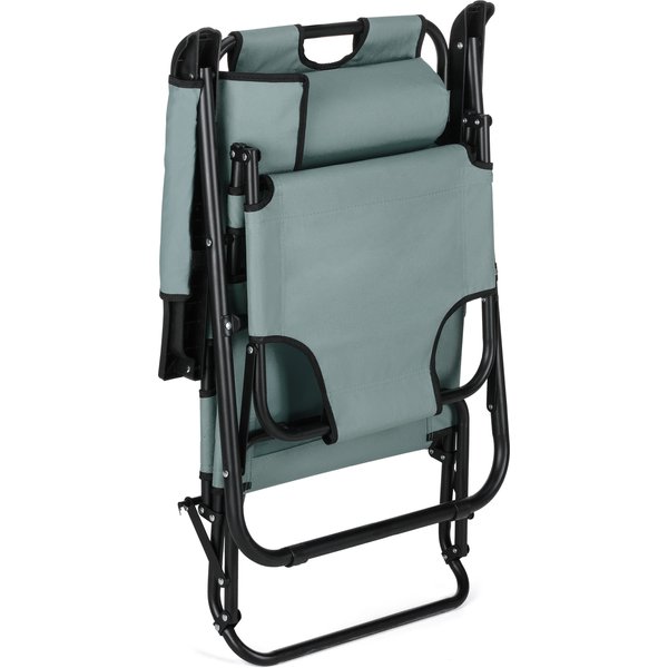 Składana konstrukcja i niska waga wynosząca niecałe 5 kg sprawia, że leżak jest bezproblemowy w transporcie i przechowywaniu. Regulowane oparcie i część pod nogi pozwalają na przyjęcie 1 z 2 pozycji. Do dyspozycji użytkownika jest leżak lub łóżko. Komfort odpoczynku na świeżym powietrzu podnosi ergonomiczna poszuka z możliwością zdjęcia oraz wyprofilowane podłokietniki.