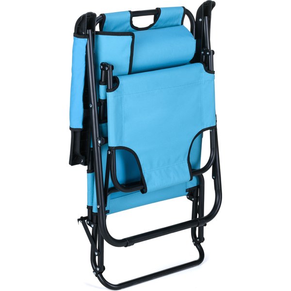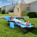 - 2w1: leżak i łóżko turystyczne: Po pełnym rozłożeniu zmienia się w wygodne łóżko plażowe – idealne do opalania, drzemki i relaksu na świeżym powietrzu.