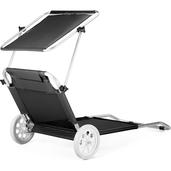 Leżak plażowy/ogrodowy Sun marki Outtec to definicja wygody i praktyczności. Ten leżak wyposażony jest w daszek oraz praktyczne kółka umożliwiające jego wygodny transport.