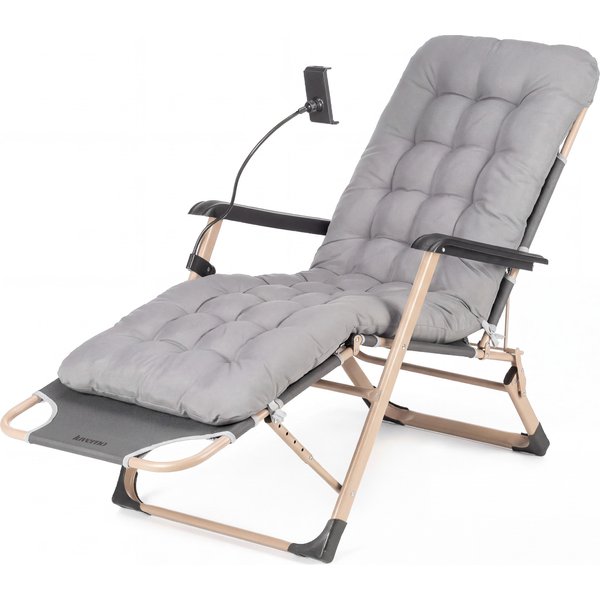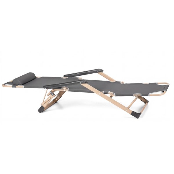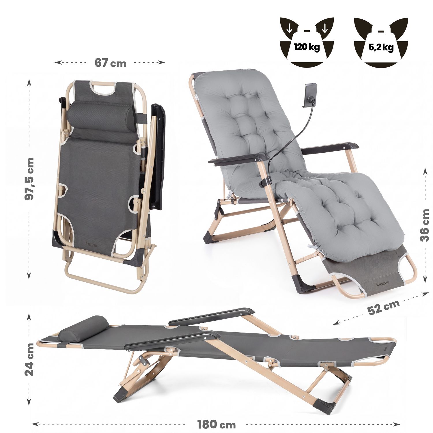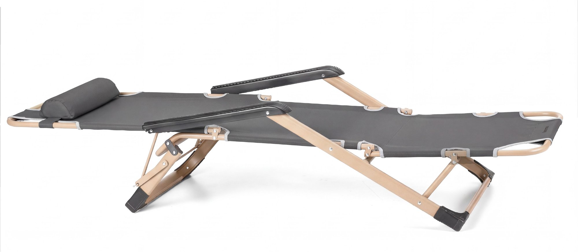 - Komfortowe podłokietniki i wysoka nośność: Zaokrąglone podłokietniki zapewniają wygodne podparcie dla rąk podczas relaksu. Solidna konstrukcja pozwala na maksymalne obciążenie do 120 kg, co zwiększa funkcjonalność leżaka podczas codziennego użytkowania.