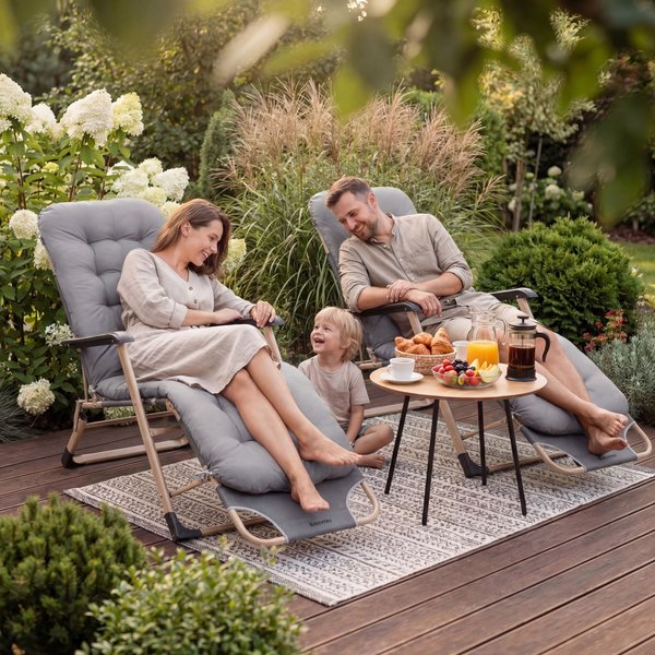 Możliwość regulacji pozwala dopasować ułożenie leżaka do różnych form wypoczynku – od spokojnego opalania po komfortowe czytanie książki na tarasie. Konstrukcja umożliwia zmianę pozycji oparcia oraz podnóżka, dzięki czemu łatwo znaleźć ustawienie sprzyjające relaksowi w ogrodzie lub na balkonie. Po zakończonym odpoczynku leżak można złożyć, co ułatwia przechowywanie i pozwala zaoszczędzić miejsce.