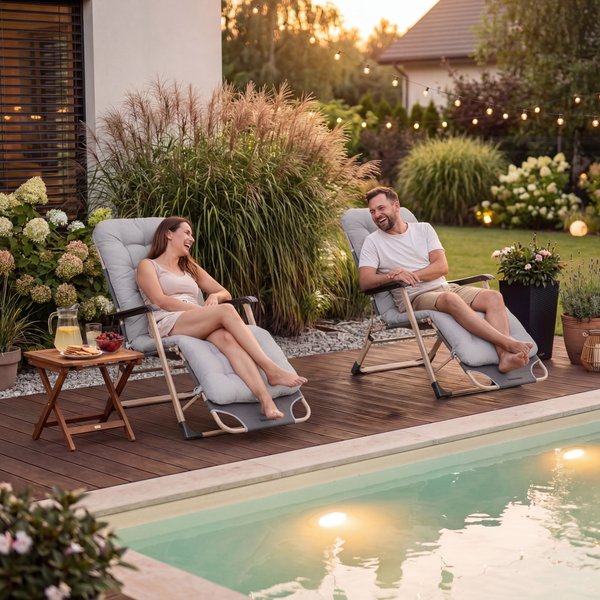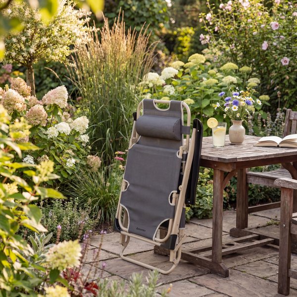 Leżak ogrodowy Luverno został zaprojektowany z myślą o wygodnym wypoczynku na tarasie, balkonie lub w ogrodzie, wprowadzając atmosferę letniego relaksu inspirowanego włoskim dolce vita. Zagłówek oraz dodatkowa poduszka zapewniają komfortowe podparcie ciała, dzięki czemu nawet dłuższe chwile odpoczynku na świeżym powietrzu stają się jeszcze przyjemniejsze. Regulowane oparcie pozwala łatwo dopasować kąt nachylenia do aktualnych potrzeb – od opalania po spokojne czytanie książki. Uchwyt na telefon oraz stabilna konstrukcja z trwałych materiałów sprawiają, że codzienny relaks w ogrodzie zyskuje jeszcze więcej wygody i funkcjonalności.