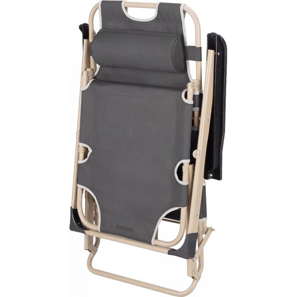 - Dopasowanie pozycji do sposobu wypoczynku: 2-poziomowa regulacja leżaka umożliwia ustawienie go w pozycji siedzącej lub leżącej. Pozwala to wygodnie odpoczywać podczas popołudniowego relaksu, opalania czy spokojnego czytania.