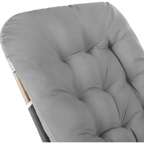 - Stabilne mocowanie i możliwość zdjęcia zagłówka: Poduszka nasuwana na konstrukcję leżaka oraz dodatkowe wiązania w kilku miejscach zapobiegają jej przesuwaniu się podczas zmiany pozycji. Zagłówek można w razie potrzeby łatwo zdjąć, dopasowując sposób podparcia do indywidualnych preferencji wypoczynku.