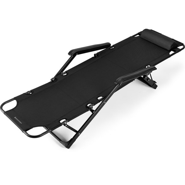 Miękka, pikowana poduszka pokrywająca całą powierzchnię leżaka zapewnia równomierne podparcie ciała – od nóg aż po kark. Dodatkowy, regulowany zagłówek stabilizuje głowę i pozwala na wygodne dopasowanie pozycji. Całość uzupełnia oddychająca tkanina, która wspiera cyrkulację powietrza i zapobiega nagrzewaniu się powierzchni w słoneczne dni.