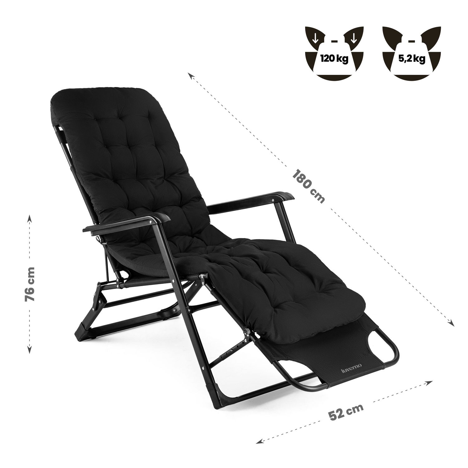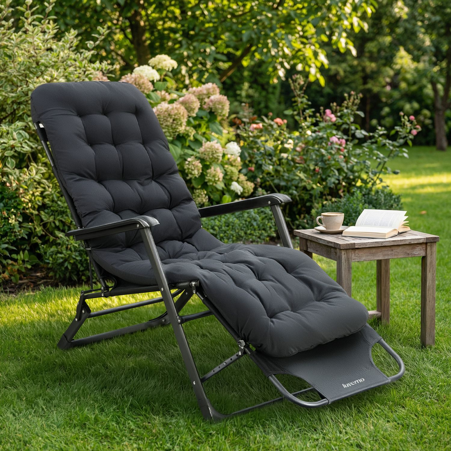 - Pełne podparcie na całej długości ciała: Gruba, komfortowa poduszka na całej powierzchni leżaka eliminuje punkty ucisku i równomiernie rozkłada ciężar ciała, co poprawia wygodę zarówno podczas siedzenia, jak i leżenia.