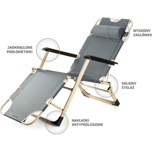 - Regulacja pozycji siedziska sprawia, że możesz wygodnie opalać się leżąc, czytać książkę w pozycji półleżącej lub siedzieć podczas rodzinnego grilla w ogrodzie.
