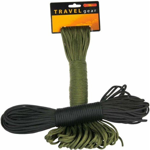 Linka Paracord marki Bushmen Travel Gear to niezwykle lekka i mocna linka spadochronowa o wszechstronnym zastosowaniu w survivalu i turystyce. Paracord to nylonowa linka, która pierwotnie służyła do łączenia czaszy spadochronu z uprzężą skoczka. Linkę Paracord wykorzystasz między innymi do: troczenia rzeczy do bagażu, do wieszania przedmiotów, zamiast linki do namiotów, do tworzenia sieci na ryby lub sideł, możesz nią także opleść rękojeść noża, zrobić z niej pasek do spodni czy bransoletkę survivalową. Jedno jest pewne, w terenie linka Paracord to niezbędna rzecz, która nie zajmuje praktycznie żadnego miejsca w Twoim plecaku.