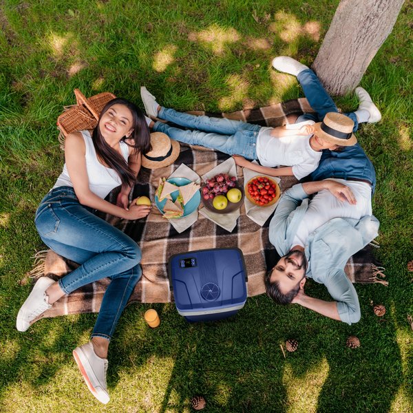 Ten model został wyposażony w intuicyjny panel sterowania, który pozwala łatwo dostosować temperaturę do aktualnych potrzeb i warunków otoczenia. Wbudowany termometr i termostat zapewniają jej stabilność, jednocześnie ograniczając zużycie energii. Po osiągnięciu zadanej temperatury urządzenie automatycznie przechodzi w tryb czuwania i włącza się tylko wtedy, gdy konieczne jest ponowne schłodzenie lub podgrzanie wnętrza. Dzięki różnym opcjom zasilania lodówka sprawdzi się zarówno w samochodzie, jak i w domku letniskowym. Dodatkowo wyposażona jest w gniazdo USB, które umożliwia wygodne ładowanie urządzeń mobilnych.