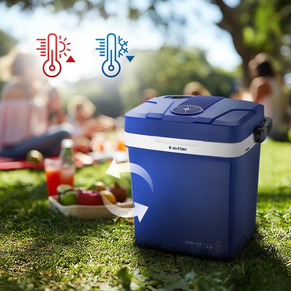 Lodówka turystyczna Outtec to znakomite rozwiązanie na każdą podróż, zapewniając skuteczne chłodzenie i utrzymanie ciepła dzięki systemowi DualFlow. Nowoczesny mechanizm oparty na ogniwach niezawierających freonu gwarantuje wydajność i ekologiczną pracę, a system cyrkulacji powietrza dba o równomierną temperaturę wewnątrz. Panel sterujący, wbudowany termometr i termostat oraz różne opcje zasilania zapewniają wygodę użytkowania. Pojemność 27 litrów pozwala zmieścić nawet 35 butelek 0,5 L, a kompaktowa konstrukcja z praktycznym uchwytem ułatwia transport. System EcoSmart optymalizuje zużycie energii, łącząc oszczędność z wysoką efektywnością chłodzenia i grzania.