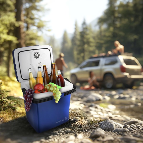 Lodówka o pojemności 27 litrów to doskonały towarzysz każdej podróży – bez trudu pomieści zarówno żywność, jak i napoje, zapewniając ich świeżość w różnych warunkach. Może zmieścić aż 35 butelek o pojemności 0,5L, co sprawia, że bez problemu zabierzesz odpowiedni zapas na rodzinny wyjazd, biwak czy relaksujący dzień na plaży.