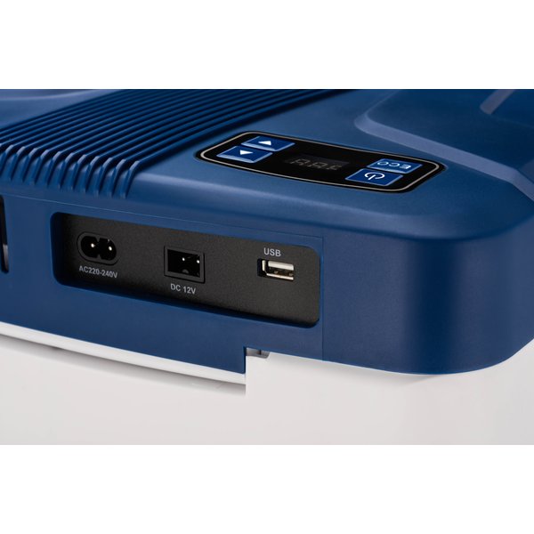 Liczne możliwości zasilania urządzenia, pozwalają korzystać z lodówki wszędzie i bez większych przeszkód. W trakcie podróży, gdy nie masz dostępu do sieci AC lub DC, świetnie sprawdzi się wtyczka z końcówką do zapalniczki samochodowej. Wszystkie elementy są dowodem na to, że produkt sprawdza się zarówno w terenie z dala od domu, jak i na działce, plaży lub komfortowym biwaku. Lodówka posiada również dodatkowe gniazdo USB, które umożliwia ładowanie dowolnego urządzenia mobilnego. Dzięki niemu będziesz w stałym kontakcie ze światem i zapewnisz bezpieczeństwo sobie i swoim bliskim.