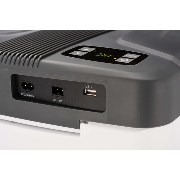 Liczne możliwości zasilania urządzenia, pozwalają korzystać z lodówki wszędzie i bez większych przeszkód. W trakcie podróży, gdy nie masz dostępu do sieci AC lub DC, świetnie sprawdzi się wtyczka z końcówką do zapalniczki samochodowej. Wszystkie elementy są dowodem na to, że produkt sprawdza się zarówno w terenie z dala od domu, jak i na działce, plaży lub komfortowym biwaku. Lodówka posiada również dodatkowe gniazdo USB, które umożliwia ładowanie dowolnego urządzenia mobilnego. Dzięki niemu będziesz w stałym kontakcie ze światem i zapewnisz bezpieczeństwo sobie i swoim bliskim.