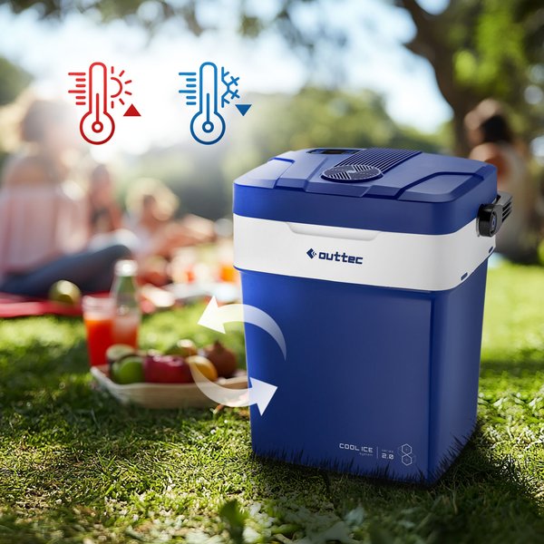 Lodówka turystyczna Outtec to funkcjonalne rozwiązanie na każdą podróż, łączące skuteczne chłodzenie i utrzymywanie ciepła dzięki systemowi DualFlow. Nowoczesny mechanizm oparty na ogniwach bez freonu wspiera wydajny system cyrkulacji powietrza, zapewniając optymalne warunki przechowywania. Czytelny panel sterujący, wbudowany termometr i termostat oraz różne opcje zasilania zwiększają komfort użytkowania. Pojemność 32 litrów i ergonomiczne wnętrze umożliwiają wygodne rozmieszczenie produktów, a system EcoSmart minimalizuje zużycie energii bez utraty efektywności. Lekka, kompaktowa konstrukcja ze składanym uchwytem sprawia, że lodówka doskonale sprawdzi się w podróży.