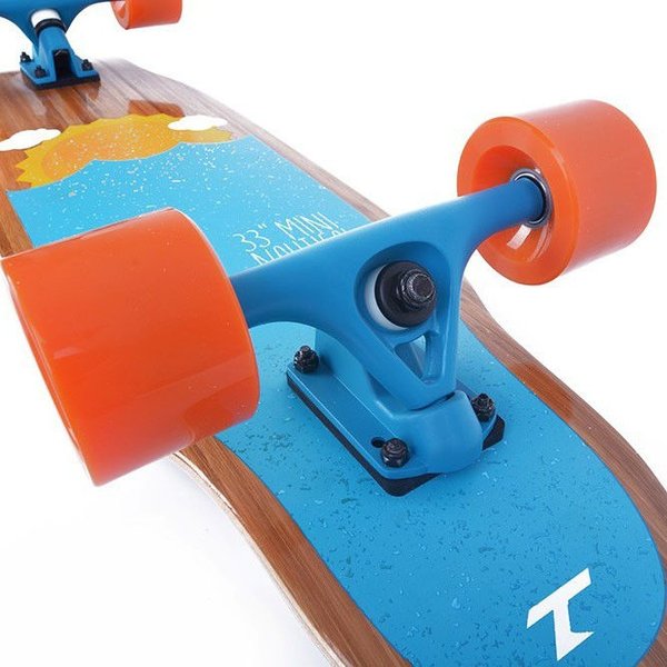 Ciekawy, wakacyjny design skieruje Twoje myśli na tory wakacyjnych przygód, nawet jeśli tkwisz w mieście. Wytrzymała konstrukcja z połączenia drewna bambusowego i klonu rosyjskiego okaże się nie tylko stabilna, ale i bardzo elastyczna. Możesz cieszyć się lepszym wyczuciem deski i lekkością, co będzie bardzo pomocne w zatłoczonym mieście. Ten model longboardu posiada także wystarczająco miękkie kółka, abyś mógł w pełni kontrolować deskę.
