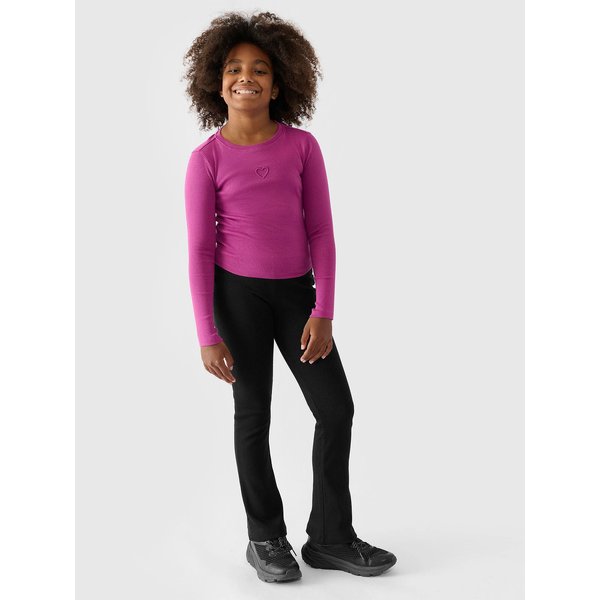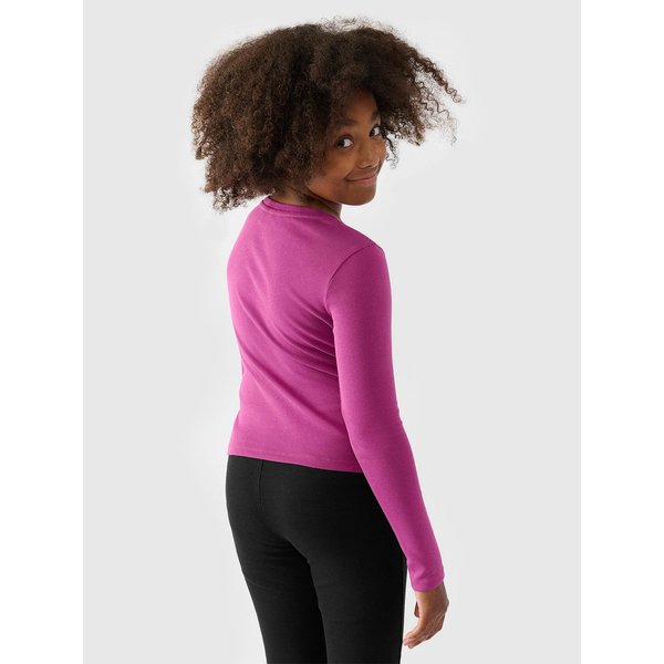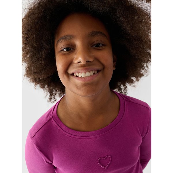 Longsleeve dziewczęcy od marki 4F to idealny wybór na co dzień, łączący wygodę i styl. Dopasowany krój slim delikatnie przylega do ciała, podkreślając sylwetkę i zapewniając swobodę ruchów. Elastyczny materiał single jersey gwarantuje komfort przez cały dzień, niezależnie od aktywności. Dzięki okrągłemu dekoltowi i długim rękawom, koszulka jest uniwersalna i pasuje do wielu stylizacji. Haftowane serce na piersi dodaje uroku i wyróżnia ten longsleeve spośród innych. Koszulka zachowuje minimalistyczny i elegancki wygląd.