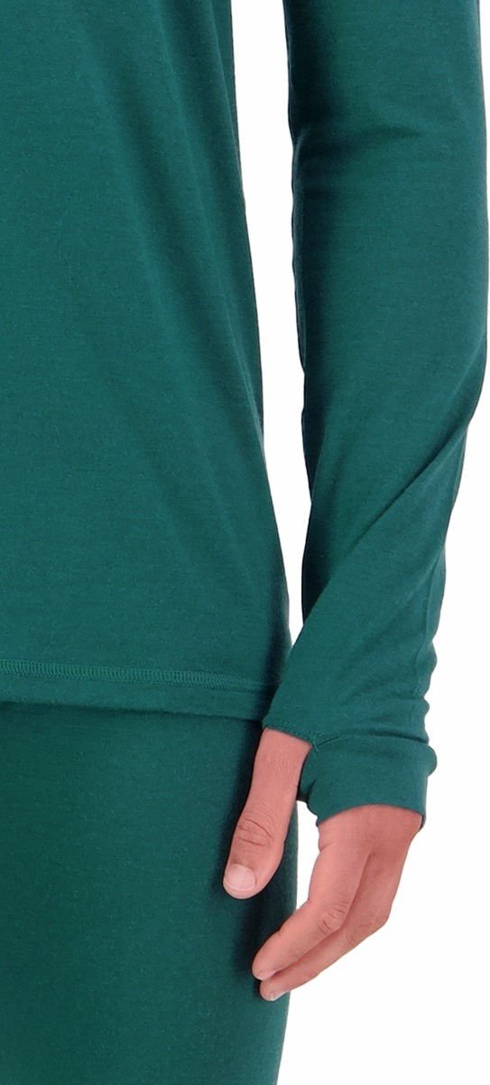 Dominującym materiałem jest wełna Merino, która gwarantuje wysoki komfort cieplny. Wełna ta jest lekka i elastyczna, a także posiada właściwości oddychające. Longsleeve skutecznie odprowadza wilgoć na zewnątrz, co przekłada się na komfort podczas noszenia. Materiał odpowiednio dopasowuje się do użytkownika i jest rozciągliwy w czterech kierunkach, dzięki czemu longsleeve gwarantuje pełną swobodę ruchów w każdej sytuacji. Pełną mobilność wspierają również pętle na kciuki, które także sprawiają, że produkt dobrze trzyma się na swoim miejscu, a rękawy nie podwijają się. Longsleeve posada płaskie szwy, dzięki czemu zminimalizowane jest ryzyko wystąpienia podrażnień i obtarć.
