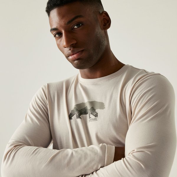 Ciepły i stylowy longsleeve męski Maylow od Regatta łączy komfort z nowoczesnym wyglądem. Dzięki tkaninie Coolweave, będącej mieszanką bawełny i poliestru, zapewnia wyjątkową miękkość i wygodę noszenia, idealną na okresy przejściowe. Klasyczny krój z okrągłym dekoltem oraz grafika z motywem gór dodają unikalnego charakteru. Longsleeve jest lekki i przyjemny w dotyku, a dopasowany fason podkreśla sylwetkę, zapewniając elegancki wygląd na co dzień. Staranne wykończenie szwów gwarantuje trwałość i jakość.