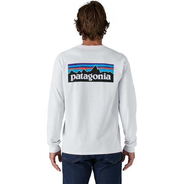 Klasyczna męska koszulka z długim rękawem to doskonała opcja na chłodniejsze dni, dlaczego mamy dla Ciebie propozycję do marki Patagonia - Long Sleeved P-6 Logo Responsibili Tee.