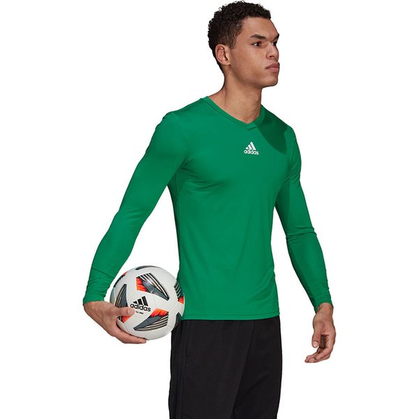 Team Base marki Adidas to koszulka z długim rękawem pochodząca z linii Primegreen, która nie wykorzystuje nowo powstałego poliestru, tylko ten z recyklingu.