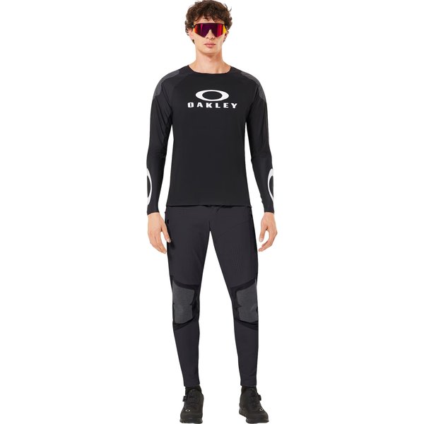 Stylowy wygląd koszulki podkreślają detale, takie jak trójwymiarowe logo Oakley Bark na klatce piersiowej oraz charakterystyczne logo Oakley Ellipse na nadgarstkach. Te estetyczne akcenty dodają nie tylko elegancji, ale także pozwalają dumnie zaznaczyć swoją przynależność do społeczności miłośników tej marki. Zasadnicze znaczenie ma również wygoda użytkowania, którą gwarantuje klejony kołnierz, mankiety i dół koszulki. Wydłużony tył zapewnia lepsze dopasowanie podczas jazdy, chroniąc plecy nawet w najbardziej dynamicznych pozycjach. Regularny krój i elastyczny materiał pozwalają na pełną swobodę ruchów, co jest nieocenione podczas pokonywania wymagających tras.
