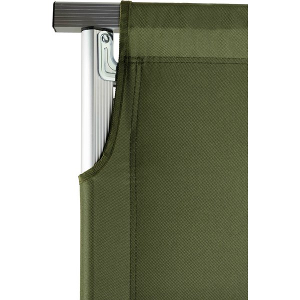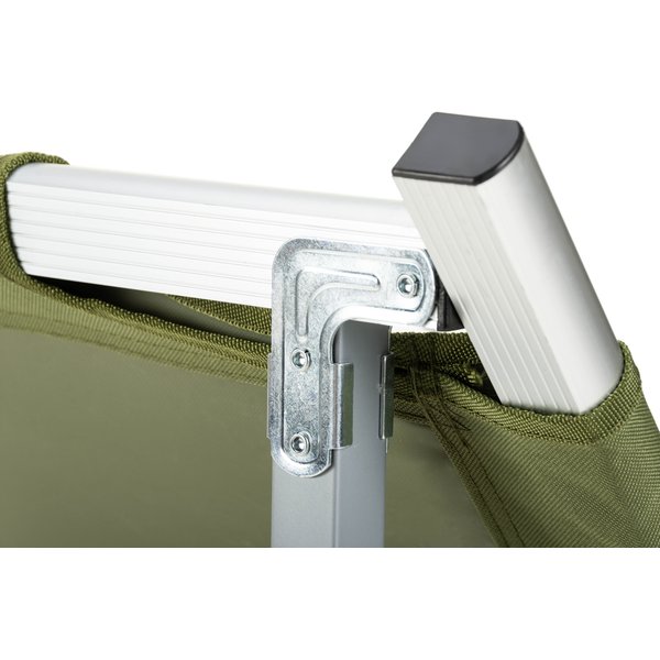 - Niska waga: Dzięki zastosowaniu lekkiego aluminium łóżko nie obciąża bagażu, a jego przenoszenie i rozkładanie nie wymaga wysiłku.