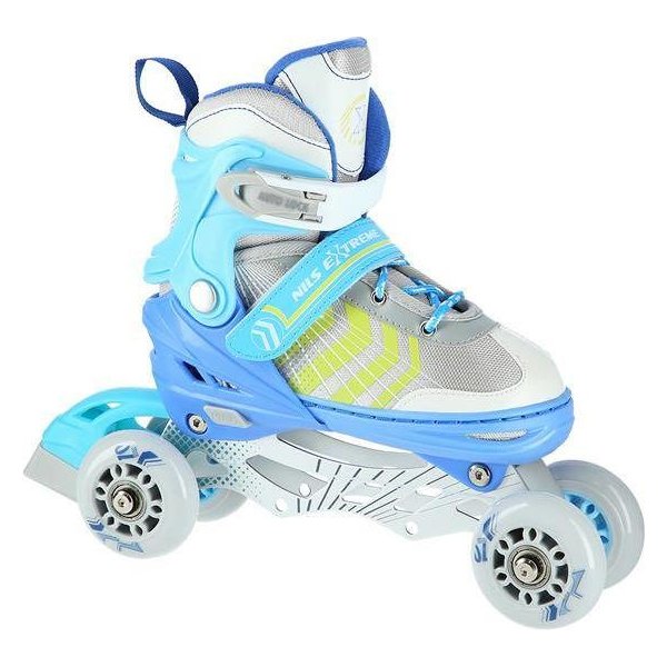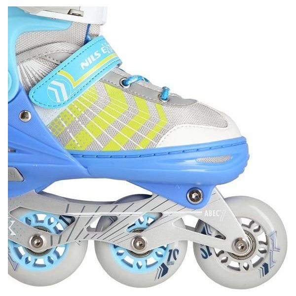 Łyżworolki wyposażone zostały w pełny system zapięć, w którego skład wchodzą: klamry, sznurowadła i rzepy. Dzięki nim masz pewność że Twoja stopa jest odpowiednio zabezpieczona przed urazami, a miękki materiał wewnątrz ochroni Twoją stopę przed możliwymi obtarciami. Gwarantujemy długi komfort użytkowania zarówno łyżew, rolek, czy wrotek poprzez czterostopniową regulację rozmiaru. Łyżworolki Nils to produkt dla osób wszechstronnych, początkujących oraz średniozaawansowanych. Świetnie sprawdzi się na lodowisku, jak i na drodze.