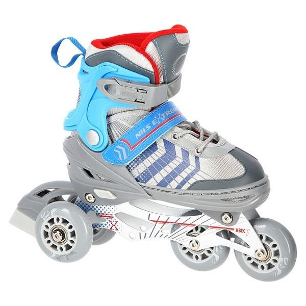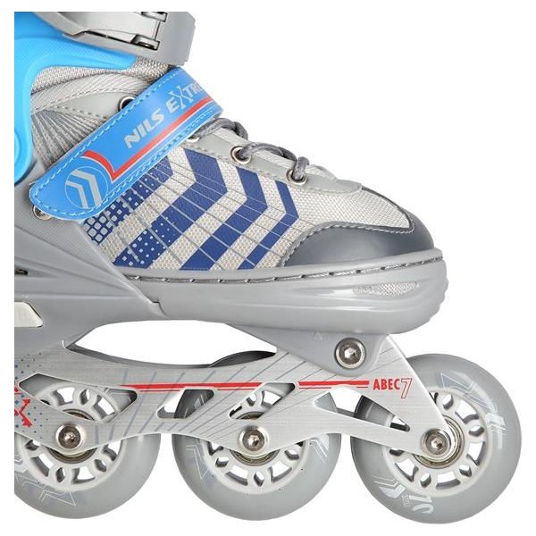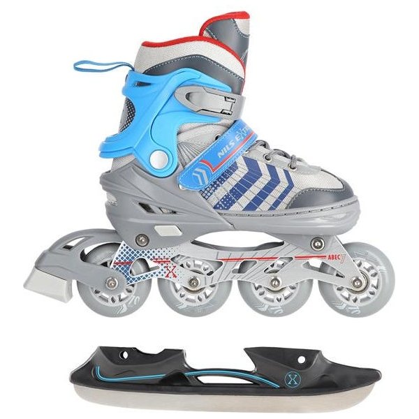 Łyżworolki wyposażone zostały w pełny system zapięć, w którego skład wchodzą: klamry, sznurowadła i rzepy. Dzięki nim masz pewność że Twoja stopa jest odpowiednio zabezpieczona przed urazami, a miękki materiał wewnątrz ochroni Twoją stopę przed możliwymi obtarciami. Gwarantujemy długi komfort użytkowania zarówno łyżew, rolek, czy wrotek poprzez czterostopniową regulację rozmiaru. Łyżworolki Nils to produkt dla osób wszechstronnych, początkujących oraz średniozaawansowanych. Świetnie sprawdzi się na lodowisku, jak i na drodze.