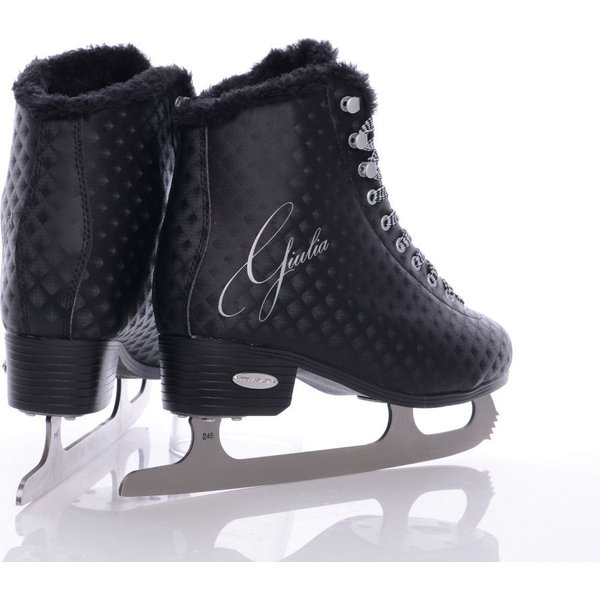Łyżwy Giulia Plus od marki Tempish to model dla kobiet, które cenią sobie wysokiej jakości wykonanie, wygodę oraz niestandardowy design. Produkt został wykonany z solidnych materiałów, które są gwarancją wytrzymałości oraz Twojego komfortu podczas użytkowania. Przeznaczone są dla najbardziej wymagających łyżwiarzy. Buty posiadają materiał zewnętrzny z wysokiej jakości syntetycznego materiału na bazie poliuretanu o fantazyjnej powierzchni 3D. Dzięki temu, swoją konstrukcją przypominają diament, co wpływa na ich oryginalność. Łyżwy posiadają solidny szkielet, zapewniający naturalne umieszczenie stopy w łyżwie. Wewnętrzna wkładka wykonana jest z czarnego aksamitnego materiału nowej generacji jest odporny na ścieranie i ma doskonałe właściwości absorpcyjne. To wewnętrzne futerko zapewnia uczucie komfortu i ciepła podczas jazdy. Rozwijaj swoje pasje z łyżwami figurowymi Giulia Plus od marki Tempish.
