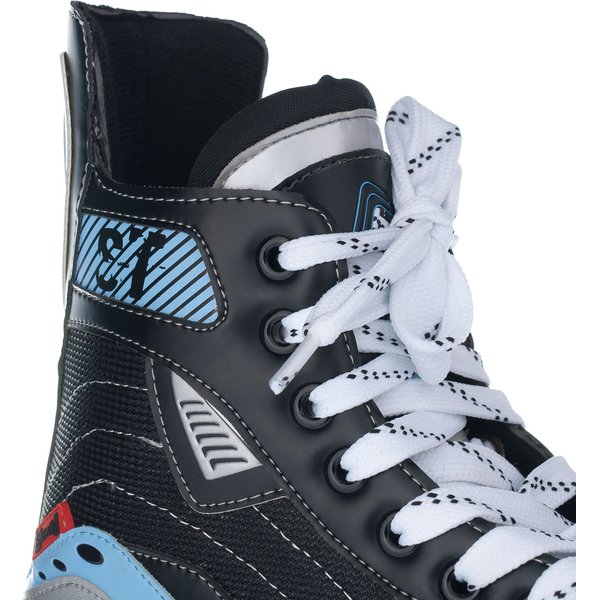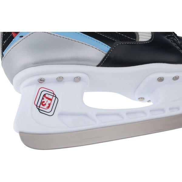 Łyżwy hokejowe o klasycznym kształcie. Bardzo dobrze dopasowują się do kształtu stopy, zapewniając komfort, dobrą stabilizację kostki i chroniąc przed utratą ciepła..