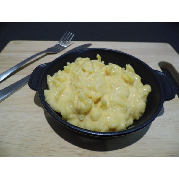 Skład: makaron pszenny (34%), sos serowy (66%) (pełne mleko, śmietanka, cebula, ser Red Leicester, ser Cheddar, ser Mozzarella), olej rzepakowy, mąka kukurydziana, sól, biały pieprz.
