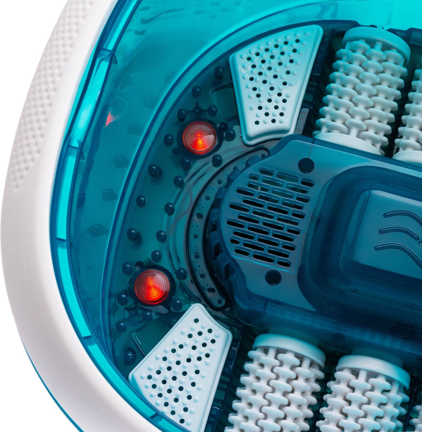 6 automatycznie obracanych rolek masujących intensywnie oddziałuje na punkty uciskowe na stopach, stymulując krążenie i przynosząc wyraźną ulgę po dniu pełnym aktywności. Hydromasażer wspiera regenerację mięśni oraz zmniejsza napięcie dzięki połączeniu masażu mechanicznego z działaniem podczerwieni i regulowanego ogrzewania.