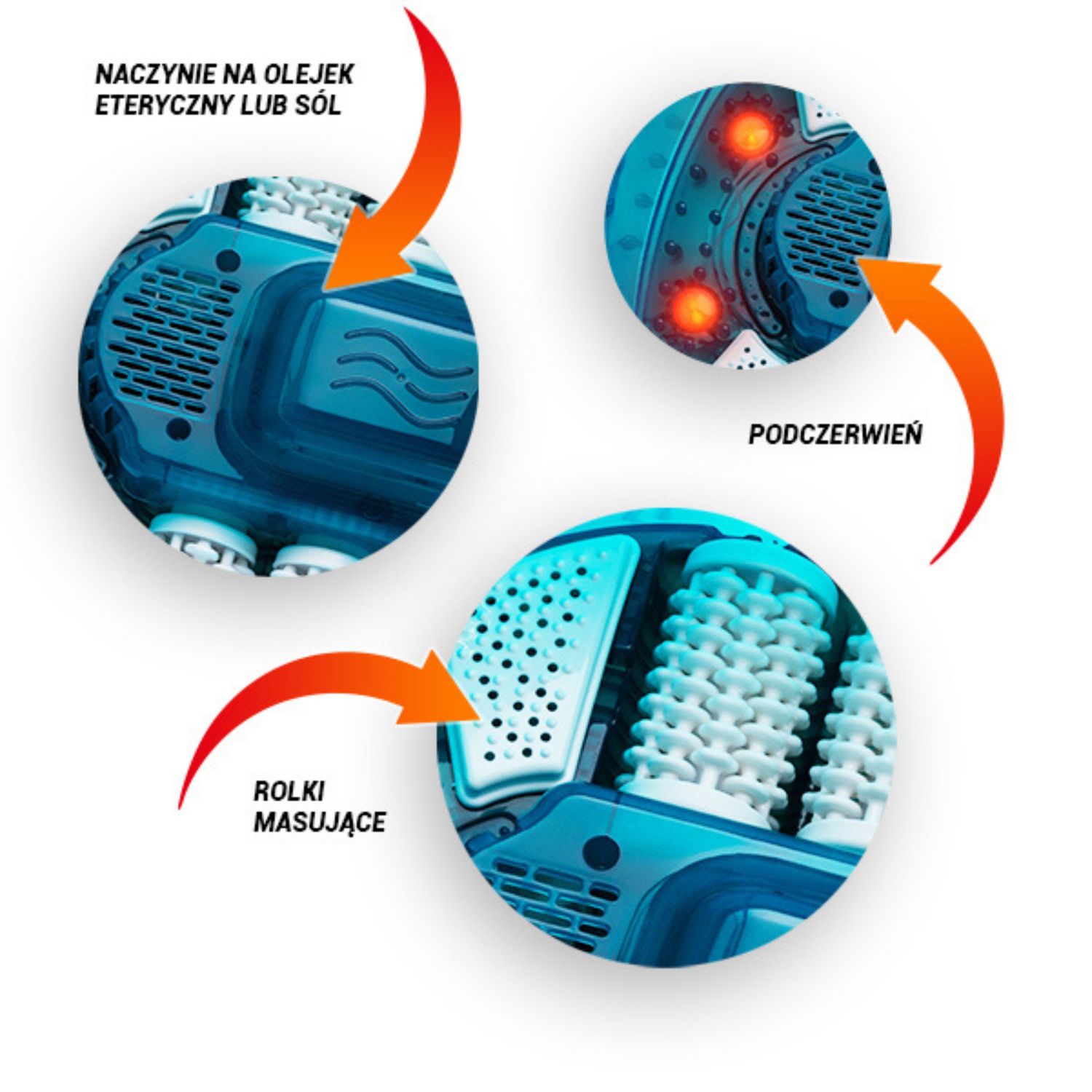 - Automatyzacja i wygoda użytkowania: Obracane rolki działają bez potrzeby manualnej obsługi, co pozwala cieszyć się masażem.