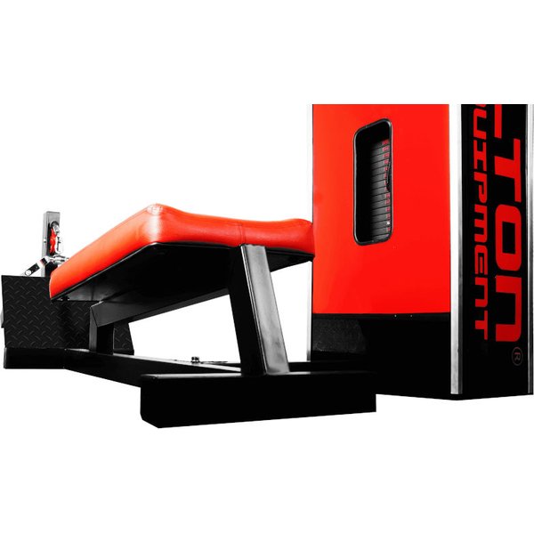 Kolejnym atutem jest system regulacji obciążenia, który umożliwia szybką zmianę ciężaru bez konieczności schodzenia z maszyny. Taka funkcjonalność pozwala na płynne dostosowywanie intensywności treningu, co jest niezwykle ważne dla progresji i osiągania lepszych wyników. Maszyna posiada także innowacyjną tapicerkę Kelton Performance, która została zaprojektowana w trzech płaszczyznach (X, Y, Z). Ten system, stworzony we współpracy z profesorami Akademii Wychowania Fizycznego w Krakowie, idealnie dopasowuje się do anatomii ludzkiego ciała. Dzięki temu podczas ćwiczeń użytkownik odczuwa większą stabilność i komfort, co przekłada się na lepsze wsparcie dla ciała i zwiększa efektywność treningu. Gruba, 10-centymetrowa tapicerka z zaokrąglonymi krawędziami i specjalnymi wgłębieniami oraz wybrzuszeniami znacznie poprawia wygodę, nawet podczas treningów z dużym obciążeniem.