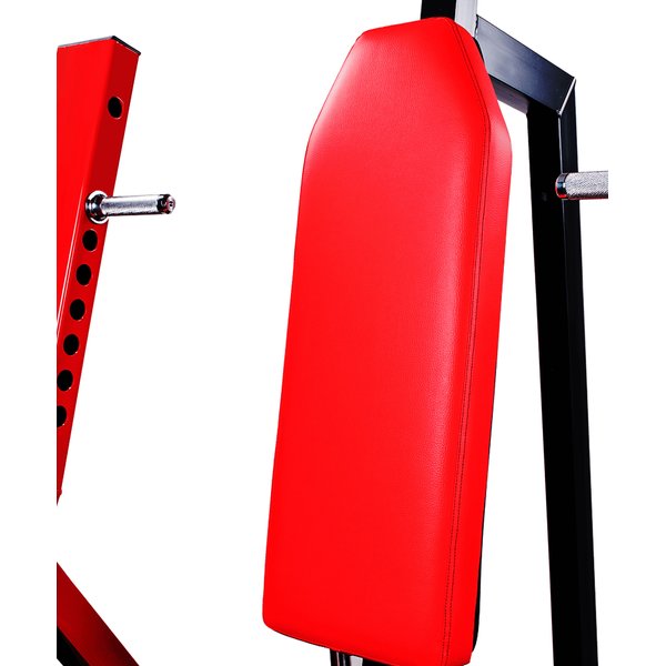 Grubość tapicerki wynosząca 10 cm zapewnia ergonomiczne i wygodne ułożenie ciała, co jest kluczowe dla komfortu podczas intensywnych ćwiczeń. Tak precyzyjnie przemyślane detale sprawiają, że trening staje się przyjemnością, a nie wyzwaniem. Nie bez znaczenia jest również fakt, że maszyna została przetestowana i zatwierdzona przez profesorów Akademii Wychowania Fizycznego w Krakowie. To dowód na to, że inwestujesz w sprzęt najwyższej klasy, sprawdzony przez specjalistów, którzy doskonale rozumieją potrzeby osób trenujących siłowo. Regulowane otwory na uchwyty pozwalają na dostosowanie maszyny do indywidualnych potrzeb użytkownika. Podest antypoślizgowy zapewnia stabilność i bezpieczeństwo podczas ćwiczeń, a stalowa konstrukcja daje pewność, że sprzęt jest wytrzymały i solidny. Dodatkowe miejsce na obciążenia umożliwia łatwe i wygodne przechowywanie ciężarów, co jest niezwykle praktyczne w dobrze zorganizowanej siłowni. Podpora na stopy oraz śruby montażowe zwiększają stabilność maszyny, a platforma do ćwiczeń oferuje wszechstronność w wykonywaniu różnorodnych ćwiczeń.