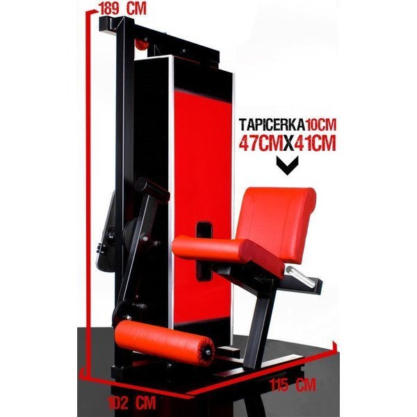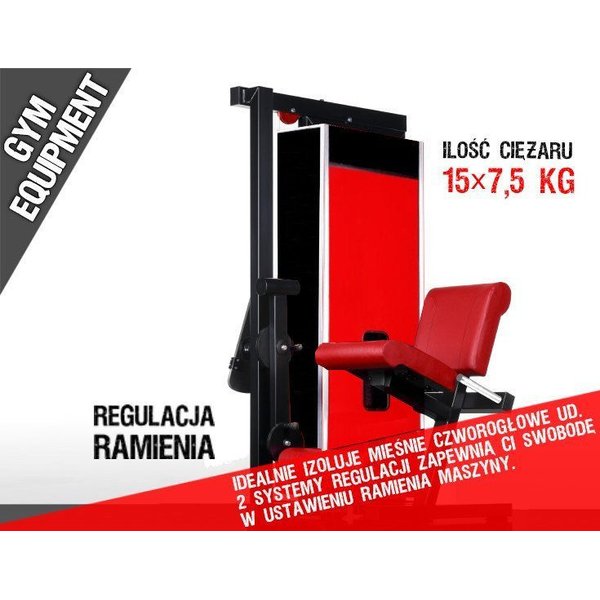 - ilość ciężaru na stosie: 15 sztuk ciężaru stalowego (7,5 kg waga jednej sztabki)