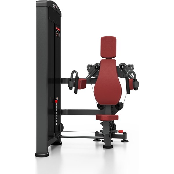 Model wykonany jest z trwałych, odpornych na uszkodzenia materiałów, a elementy siedziska i oparcia osadzone są na wytrzymałej blasze o grubości 3mm. Maszyna wykończona jest stylową, trwałą, bordową tapicerką, która posiada podwójne wzmocnienie krawędzi, dzięki czemu zmniejszone jest ryzyko wystąpienia jakichkolwiek uszkodzeń. Urządzenie posiada funkcjonalny i bardzo łatwy w obsłudze system regulacji. Pneumatyczne przetyczki dają możliwość szybkiego dopasowania niezależnie od wzrostu użytkownika, zapewniając wygodę i komfort podczas każdego treningu. Maszyna MP-U228 daje możliwość wykonania bezpiecznych i efektywnych ćwiczeń na mięśnie naramienne, a dzięki swej wysokiej jakości posłuży Ci przez bardzo długie lata!
