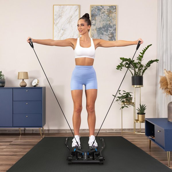 - Cichy i komfortowy trening: Amortyzująca struktura maty redukuje drgania i hałas.