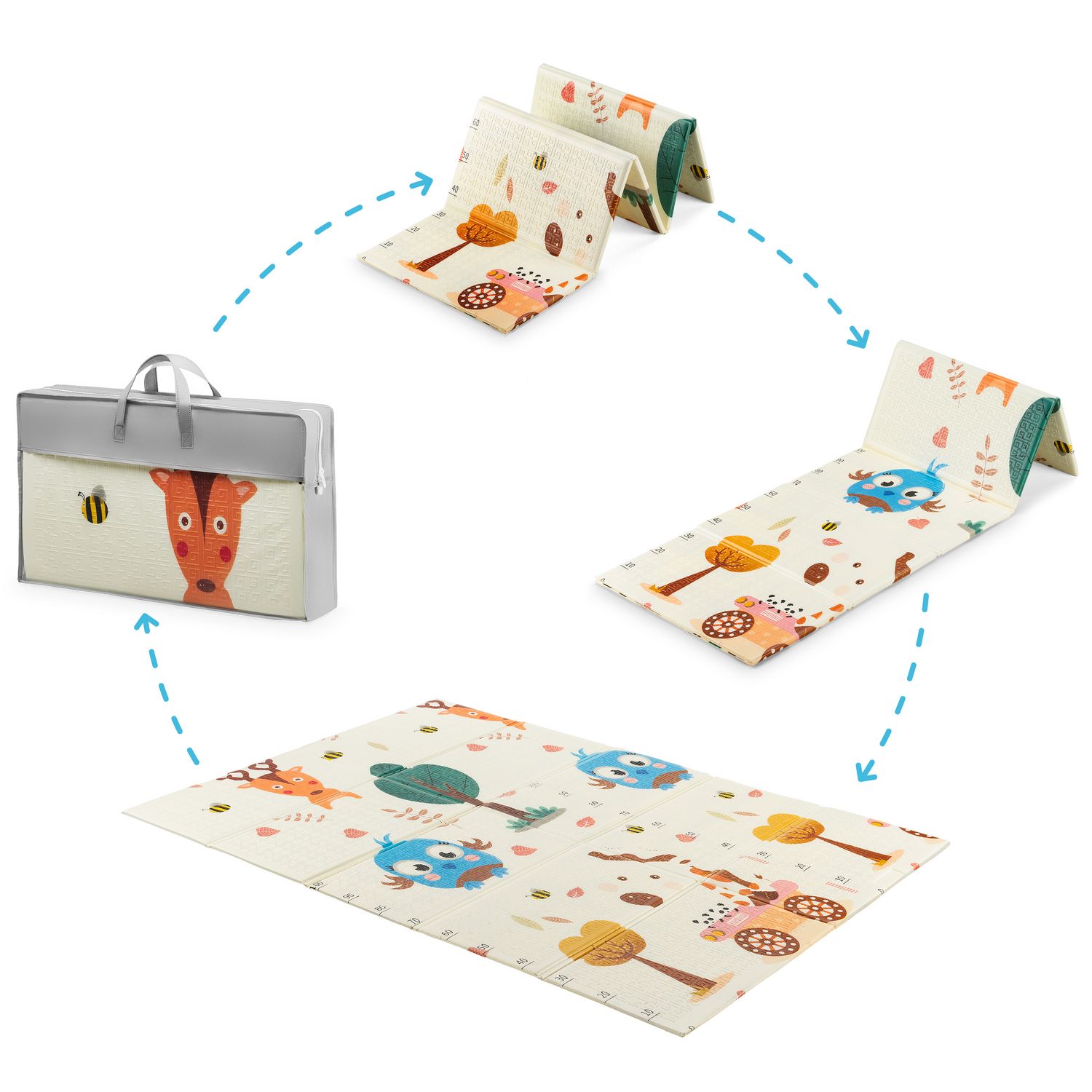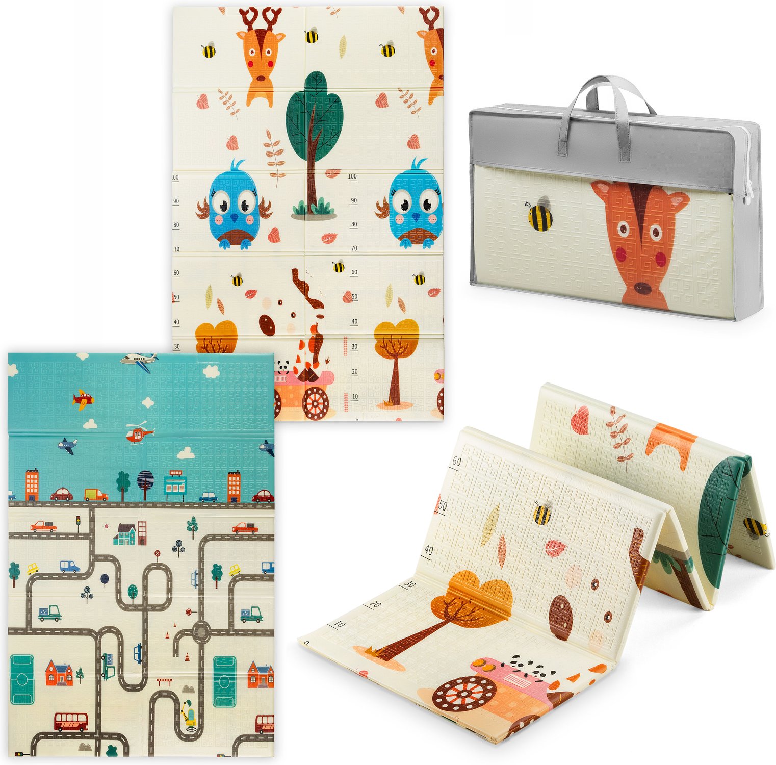 - Składana i łatwa do przechowywania: Praktyczny system składania oraz torba w zestawie ułatwiają przechowywanie i przenoszenie maty – także w podróży czy na wyjazd rodzinny.