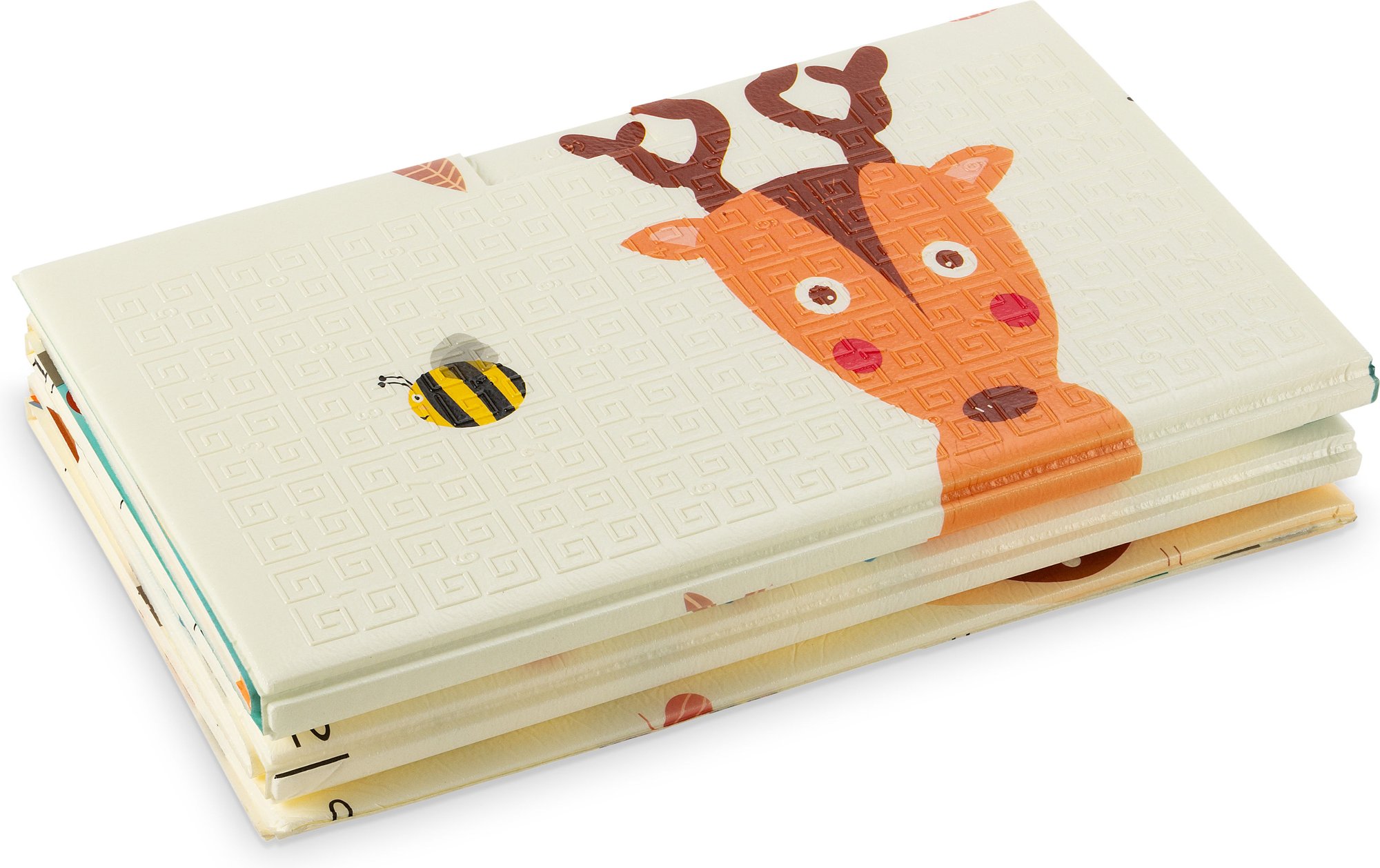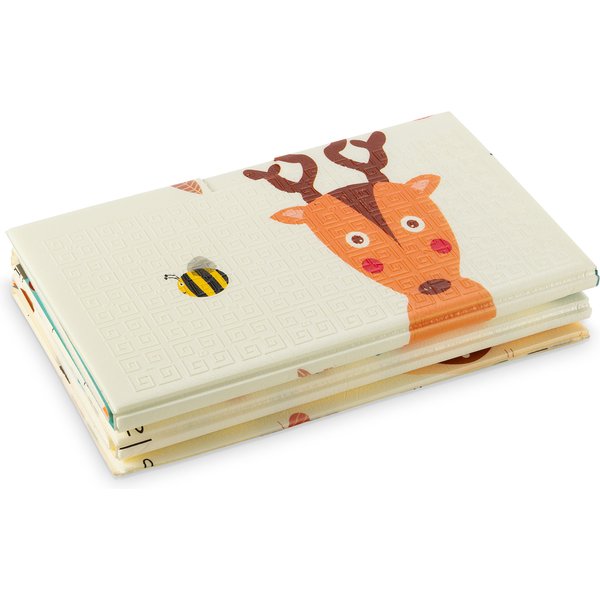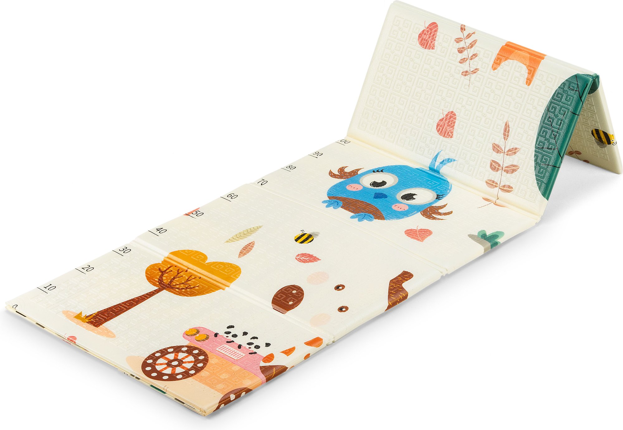 Dwustronna konstrukcja pozwala w mgnieniu oka odmienić wygląd przestrzeni do zabawy, bez konieczności korzystania z dodatkowych elementów. Dwa różne wzory dostarczają zróżnicowanych bodźców wizualnych, co pomaga utrzymać uwagę dziecka i wspiera rozwój percepcji wzrokowej.