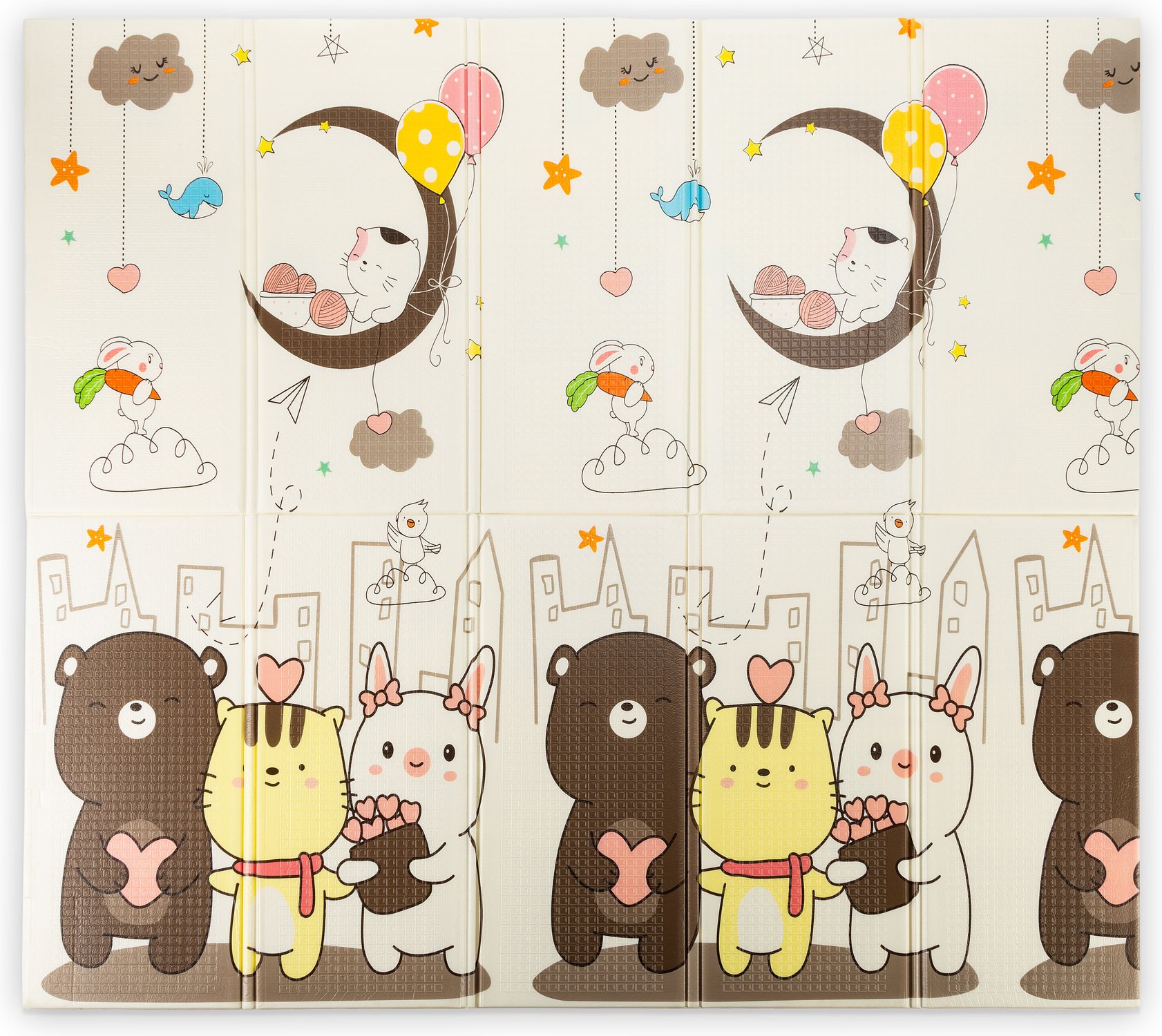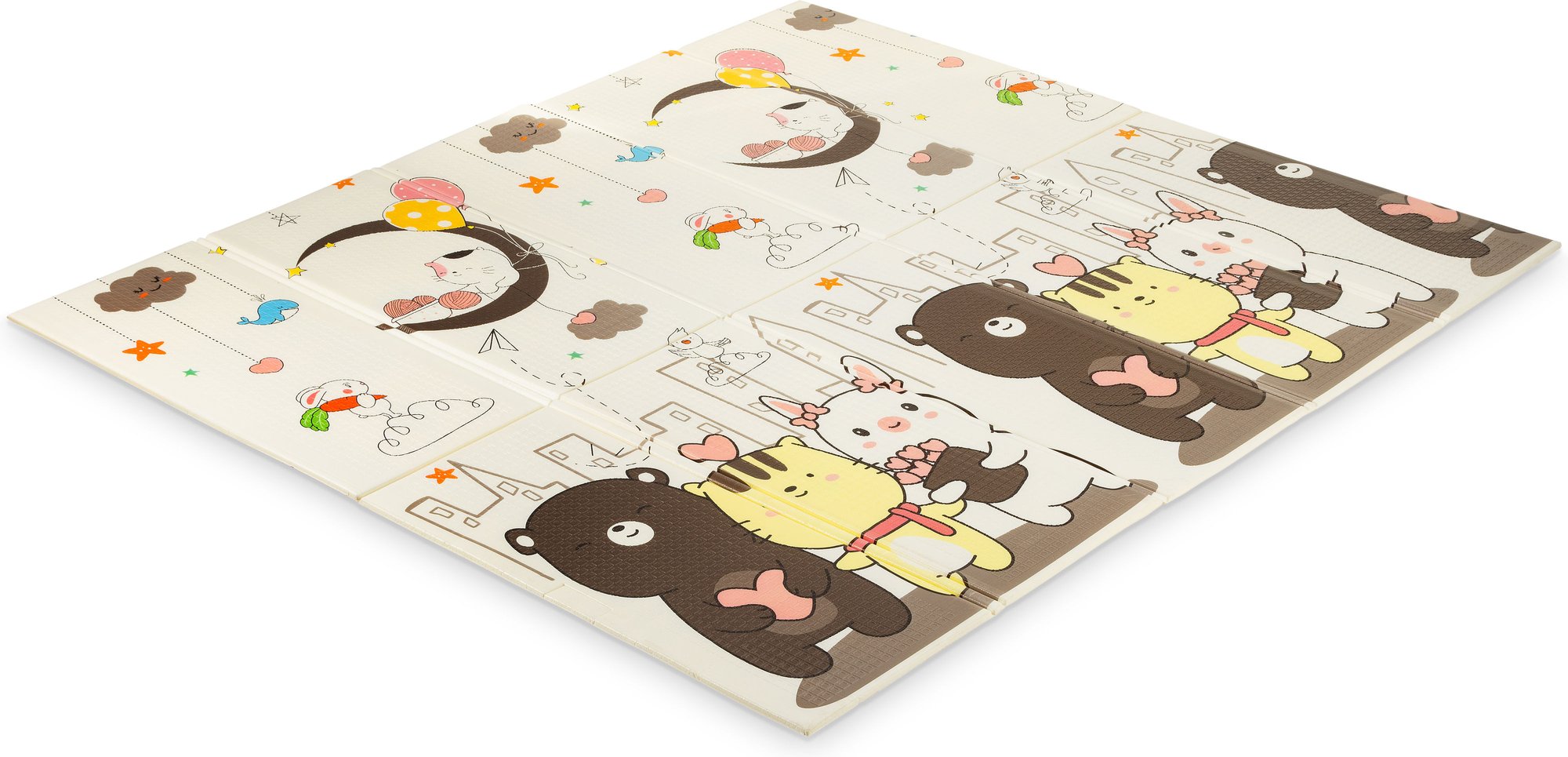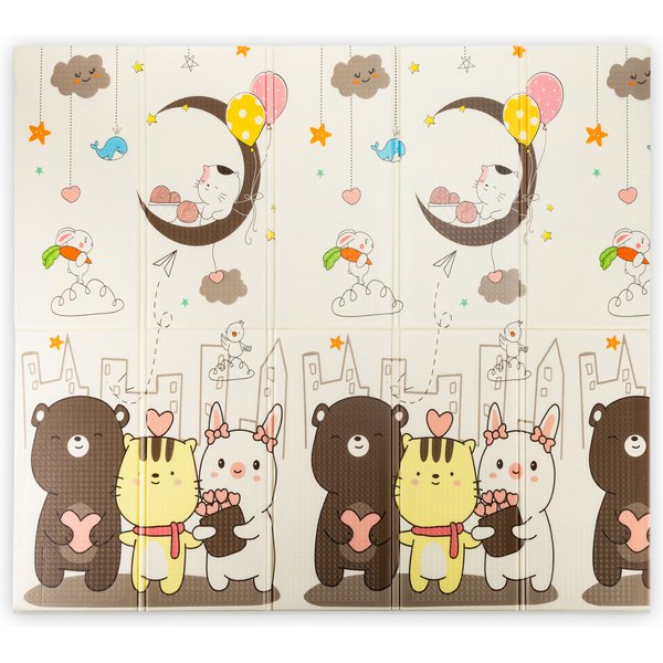 Mata o powierzchni 200x180 cm i grubości 1 cm skutecznie izoluje od chłodnej podłogi, jednocześnie amortyzując drobne upadki. Dzięki temu doskonale sprawdza się podczas raczkowania, nauki chodzenia oraz swobodnej zabawy.