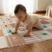 - Komfortowa przestrzeń do zabawy: Duży format maty daje dziecku swobodę ruchów, umożliwiając aktywną zabawę bez ograniczeń. To idealne miejsce do rozwijania motoryki i koordynacji.