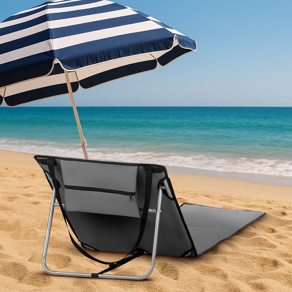 • Wygodne oparcie i komfort plażowania: Wbudowane podparcie pleców pozwala przyjąć wygodną pozycję półleżącą – idealne na plażę, piknik czy do ogrodu.