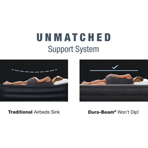 Docenisz tu wbudowaną wysokiej jakości pompkę QuickFill Plus o mocy 220-240 V, która bez większego problemu napompuje cały materac w nieco więcej niż 2 minuty. Tylko tyle będzie dzielić Cię od komfortowego wypoczynku! Ta opcja świetnie sprawdzi się również w przypadku niespodziewanych gości.
