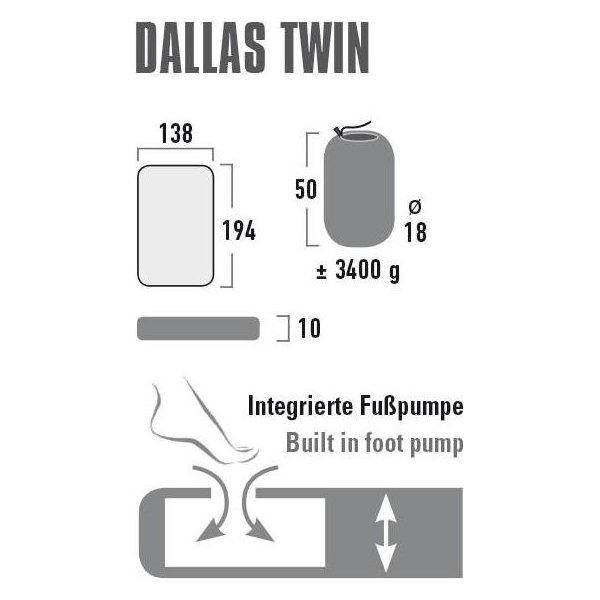 Materac Dallas Twin od High Peak, jest kempingowym wyposażeniem obowiązkowym, zwłaszcza jeśli cenisz sobie komfort porównywalny do tego we własnym łóżku. Jego główną zaletą jest zintegrowana pompka, pozwalająca napełnić powietrzem całość, bez potrzeby noszenia kolejnych niepotrzebnych akcesoriów.